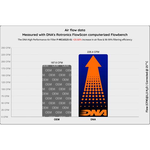 - Der Luftstrom dieses neuen DNA-Filters ist um +20,68% höher als beim Originalfilter!